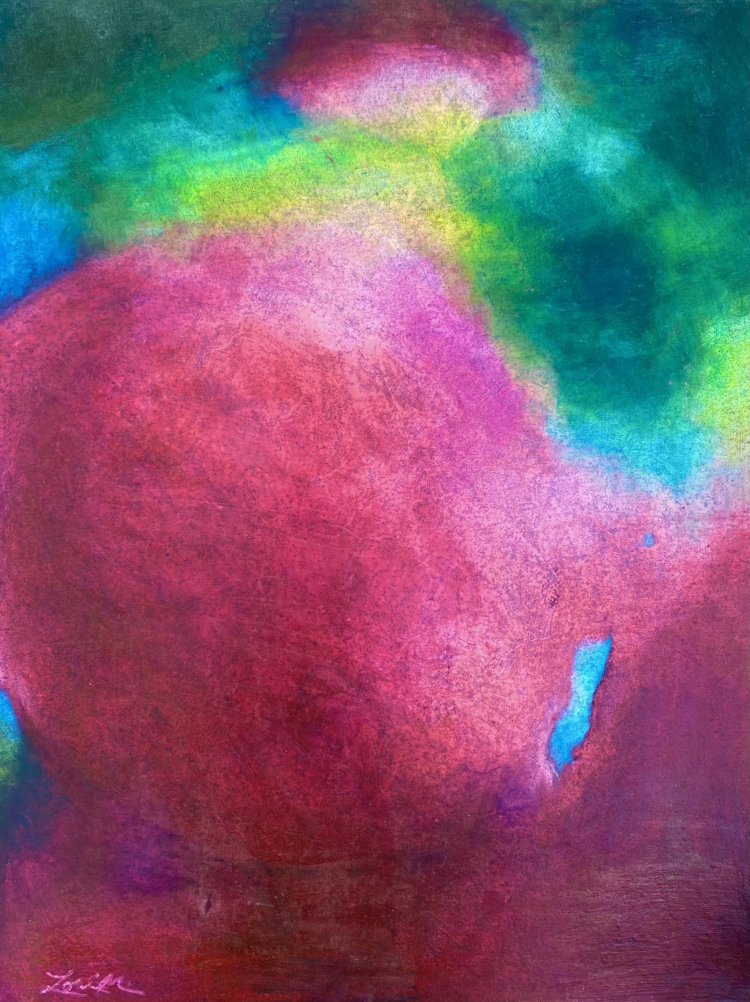 While some works are loosely based on photographs I’ve taken, most come from imagination or begin spontaneously with a choice of color(s). Imagery intuitively builds and informs, leading to an orchestrated interplay of pictorial elements in which I arrive at a more deliberate level of clarity. This approach is freeing…reconnecting to the inner child from the perspective of age and experience.